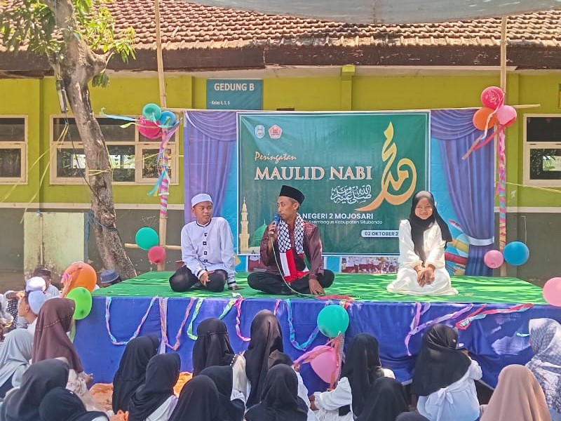 tanggal 02 Oktober 2025 bertepatan hari Kamis, seluruh Pserta Didik, Wali Murid pendidik dan tenaga kependidikan serta Komite SD Negeri 2 Mojosari melaksanakan kegiatan Maulid Nabi Muhammad SAW yang bertujuan untuk memperingati hari kelahiran Baginda Nabi. dalam acara tersebut turut hadir Bapak Syamsiadi (Kepala Desa Mojosari), Bapak Asmiyanto S.Pd (Koorwilcam Asembagus), dan beberapa Pendidik dan tenaga kependiikan yang sudah purnah tugas dari lembaga. Ustadz M Laiq (Penceramah Maulid) memberikan tausiyah kepasa siuswa dan siswi salah satunya dengan meneladani akhlakul karimah Baginda Nabi seperti, Menghomati kedaua orang tua, guru serta sesama teman, memakai tangan kanan ketika makan dengan mengucapkan Bismillah.